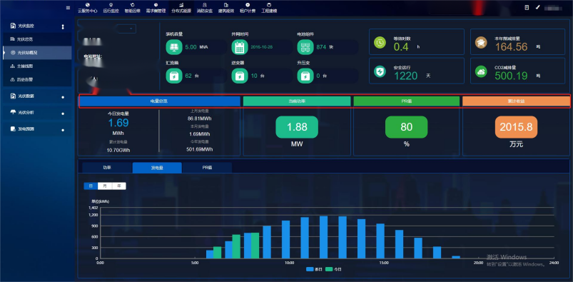 某园区新能源供电场景,构建光伏发电监测与运维管理系统,实现发电设备运行状态监测与能效分析;基于物联网感知与数据平台技术,提升发电效率与运维管理水平。
